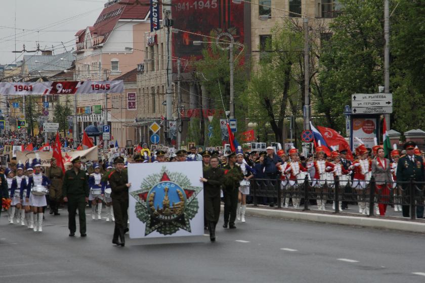 На площади Победы состоялся торжественный митинг. Выступавшие на нем говорили слова признательности ветеранам Великой Отечественной войны, о необходимости сохранять память об их подвиге для молодых поколений.К Вечному огню на могилу Неизвестного солдата, памятнику Маршалу Жукову и мемориалу были возложены цветы и венки.