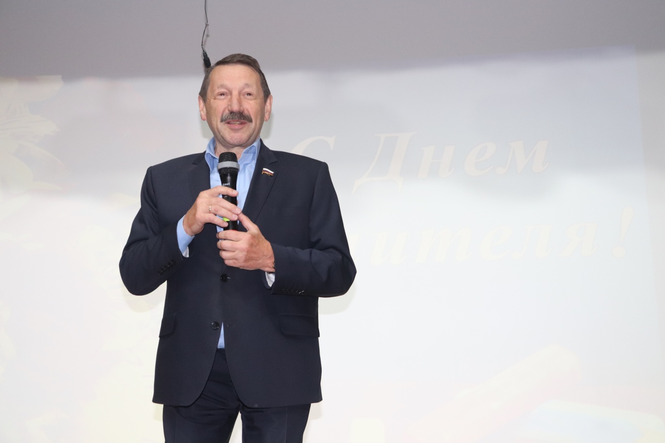 «Я считаю вас своими коллегами, ведь, хотя и непродолжительное время, но я тоже работал в школе. До сих пор с теплотой вспоминаю те годы, своих учеников, с некоторыми из которых поддерживаю связь до сих пор. Моя старшая внучка выбрала для себя профессию учителя, сейчас она ведёт уроки русского языка и литературы в одной из школ Обнинска. Учитель— это состояние души, призвание. Пусть удовлетворение от педагогической профессии не покидает вас никогда», - обратился он к присутствующим.