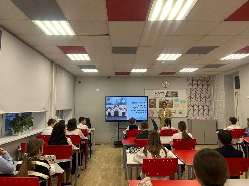 Мария Бутина поделилась интересными фактами о связи Третьяковской галереи с Калужской областью, рассказав, что основатели династии Третьяковых – родом из Малоярославца. Школьники с большим интересом слушали рассказ гостьи, активно задавали вопросы об экспонатах галереи и с удовольствием расширяли свои знания об искусстве и истории родного края.