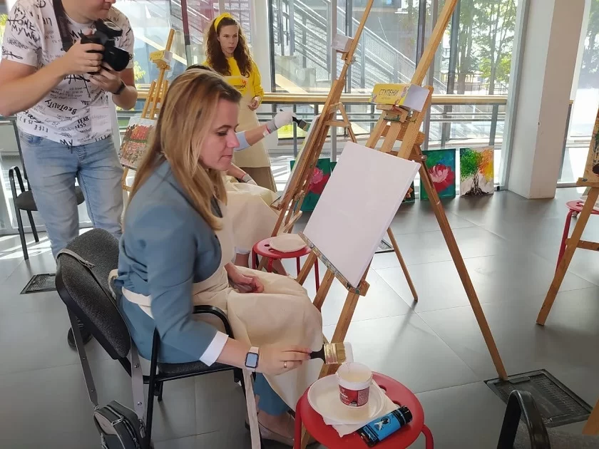 Ольга Коробова подробно ознакомилась со стендами всех организаций, принявших участие в форуме, попробовала свои силы в разных мастер-классах, один из которых был художественным от «Оранжевого города».