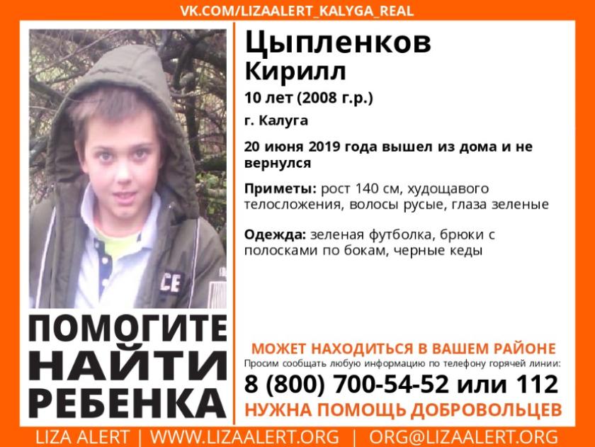 Приметы Кирилла: рост 140 сантиметров, худощавого телосложения, волосы русые, глаза зеленые. Был одет в зеленую футболку, брюки с полосками по бокам, черные кеды.