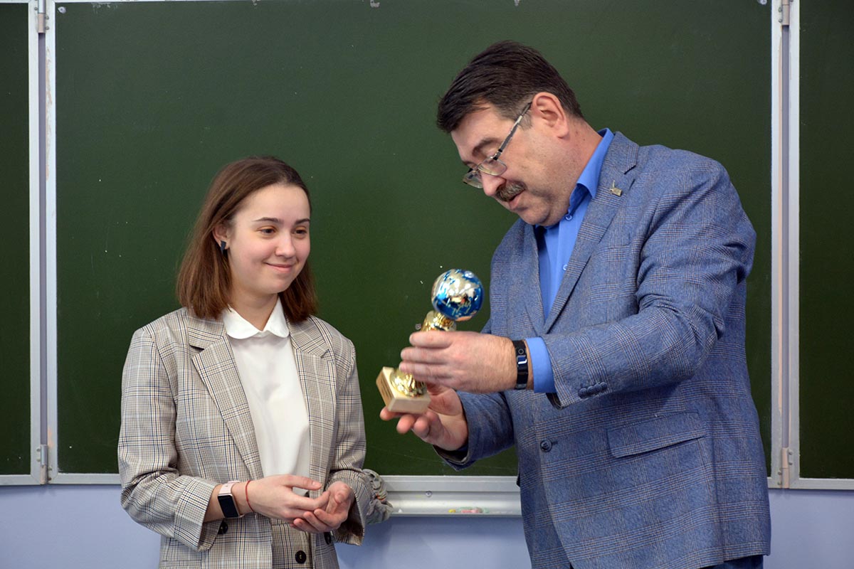С Александрой КОЛЕСНИКОВОЙ, которая только начинает свой путь в интереснейшей, но непростой профессии, встретился председатель регионального отделения Союза журналистов России Юрий Расторгуев. Он вручил Саше заслуженную награду и пообщался с ее юными коллегами по «Нескучной медиа-школе». Это объединение и пресс-центр действуют в боровской школе № 1 под руководством педагога Ольги Коваль.