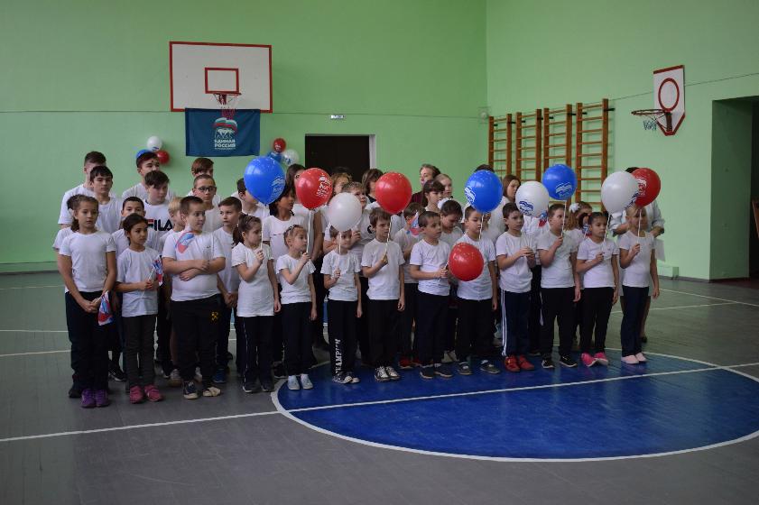 Анатолий Владимирович вручил директору школы памятный знак за то, что данный спортивный зал отремонтирован в рамках партийного проекта «Детский спорт». Также школе было подарено несколько новых спортивных мячей.