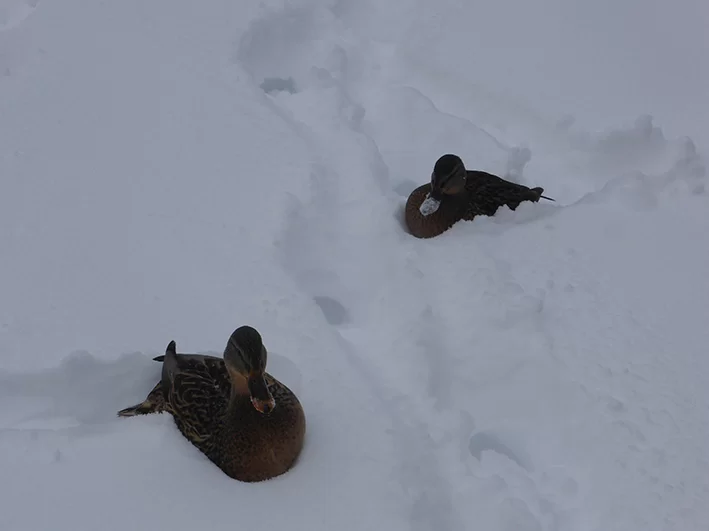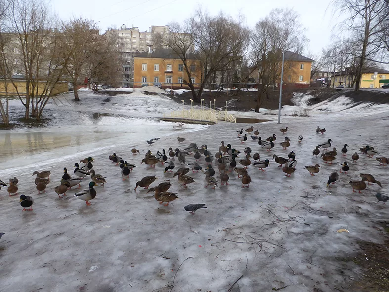 - Сам наблюдал на речке Терепец в Калуге - утки там раньше на воде сидели, а теперь переместились на заснеженную лужайку. На воду бросаем подкормку – не летят, а ждут, когда принесем на лужайку. Так люди их приучили.