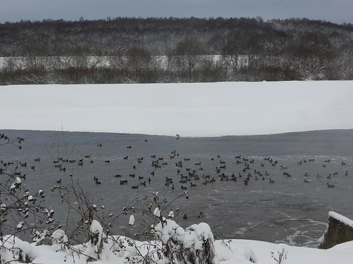 В минувшие выходные нам удалось посетить шесть главных точек концентрации зимующих уток в Калуге: Оку (у очистных сооружений), две точки на реке Терепец, сероводородные озёра, сквер Содружества на улице Московской и Тимашевский пруд. Насчитали около 1650 крякв. Это больше, чем в прошлом году.