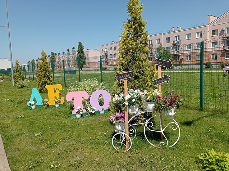 Для украшения двора и дизайнерского дополнения активисты дома делают своими руками многочисленные объекты из цемента или бетона. Креативные цветочные вазоны и бордюры украшают придомовую территорию и делают ее уникальной. Мимо никто не проходит без добродушной улыбки. Да и самим жителям дома приятно видеть не унылую площадку, а что-то милое, забавное в своем дворе.