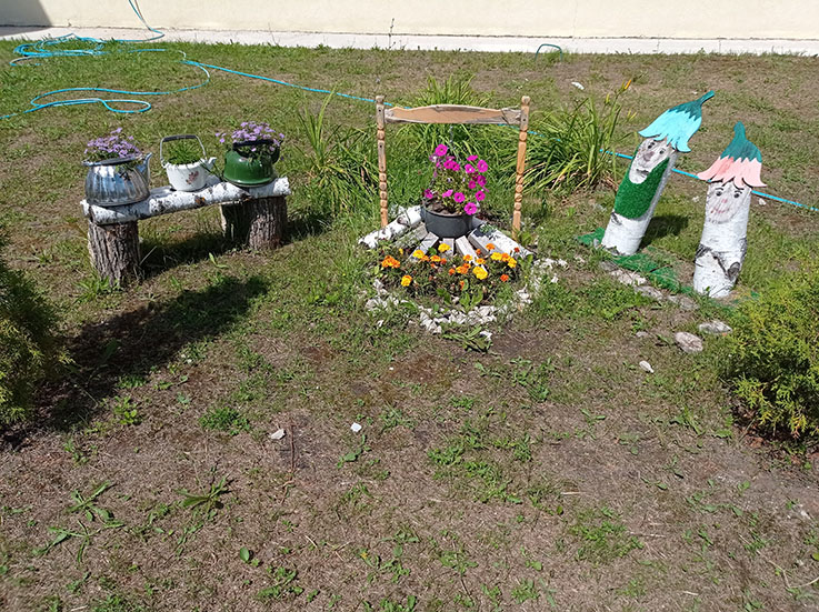 Для этого используются различные арт-объекты. Цветы помещают в деревянные ящики, создавая из них вагоны паровозика, цветы вставляют в лапки животных, изготовленных из фанеры, ими украшают различные оригинальные по форме вазоны.