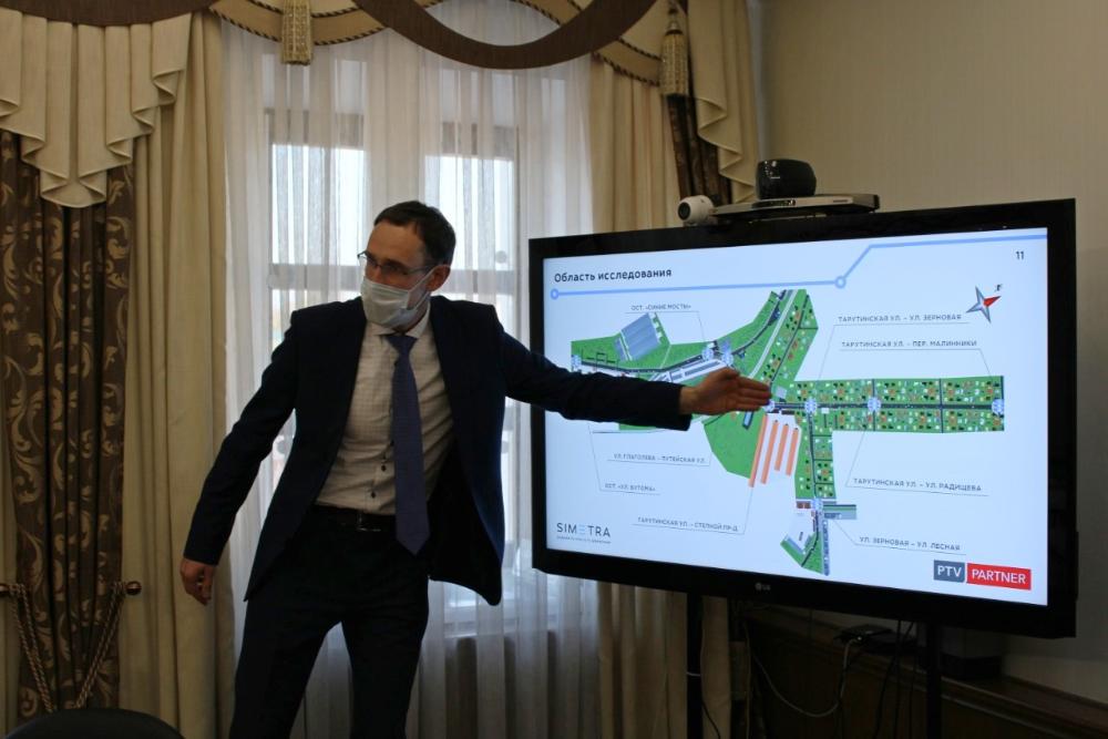 Разработчикам модели была поставлена задача улучшить транспортную схему без использования дорогостоящих инфраструктурных решений. Они постарались найти тот вариант, который будет работать пять и более лет. Для этого проводились полевые исследования: измерялась интенсивность движения на Синих мостах и примыкающих к ним улицах, длина очередей автомобилей, определялись характерные для этого района Калуги часы пик. Было разработано несколько вариантов решения проблемы. Наиболее оптимальный был представлен городским управленцам.