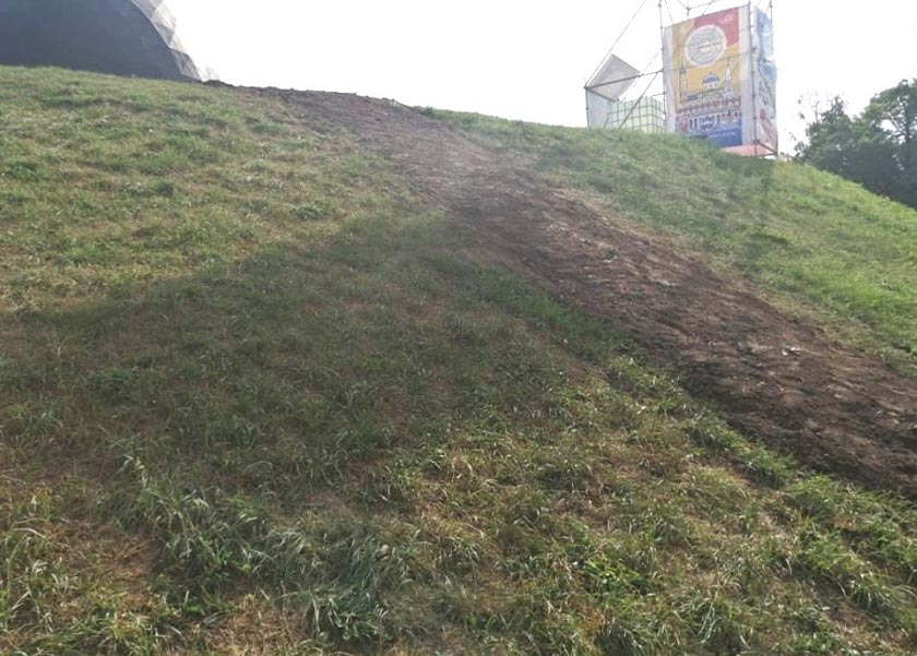 «В последние дни я рассказывал о том, что рабочие тестируют новую подсветку «шарика». В этом месте на днях перекладывали кабели для новой системы освещения, нужно было вырыть траншею. Сейчас уже работы закончили, траншею закопали, а склон укрепили. Уже сегодня подсветка заработает в полной мере. Теперь каждый вечер у «шарика» будет красиво и ярко, обязательно приходите!»