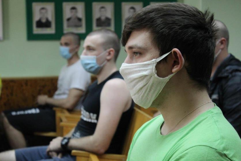 После речей новобранцев рассадили в специально обработанный автобус и увезли брать анализы на коронавирус. Затем их накормят и отправят по военным частям.