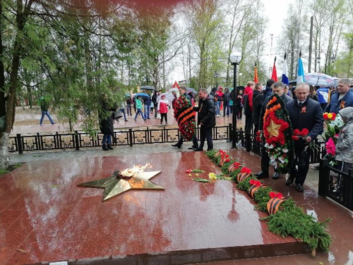 Вместе с участниками небольшого митинга, главами администраций в обновленном парке «Победы» возложил венки и цветы на Братскую могилу, к подножию памятника погибшим в Великой Отечественной войне. Затем присутствующие почтили память минутой молчания.