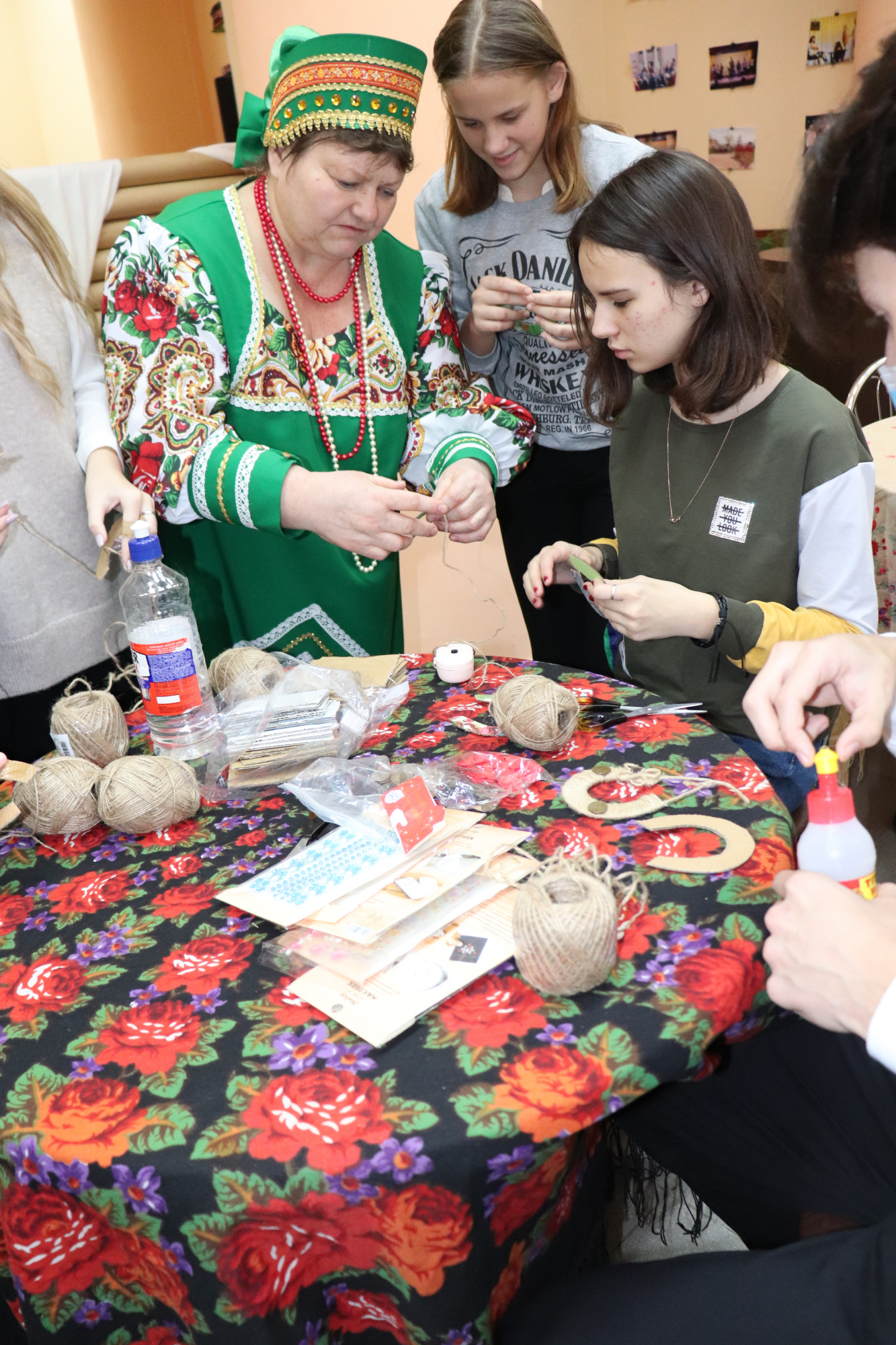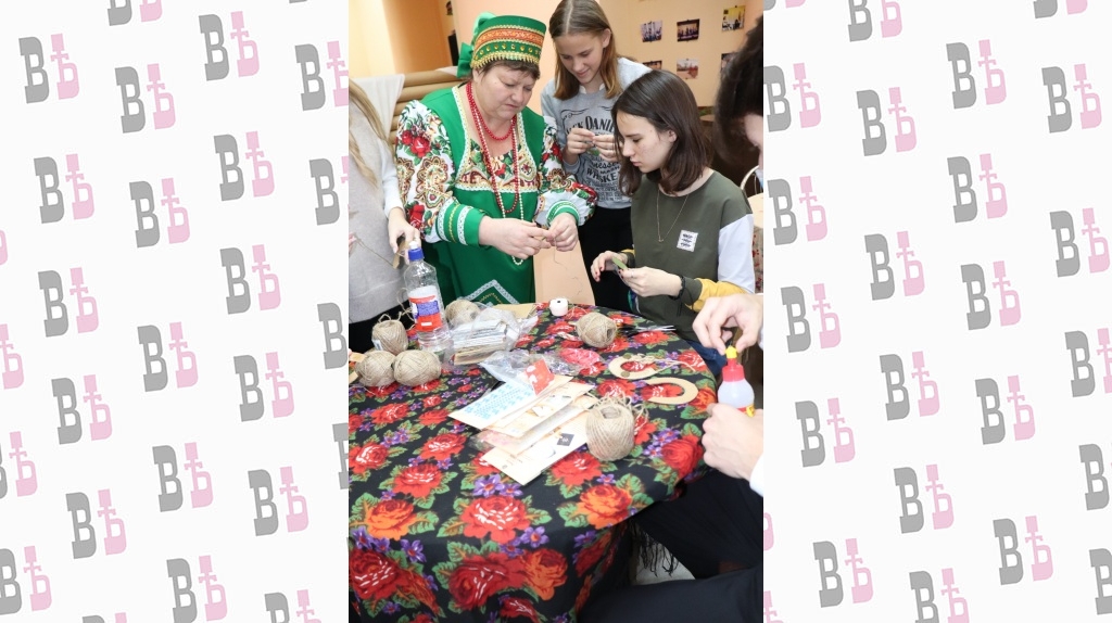 В конце экскурсии Мария Козина и Светлана Сидорчук провели для школьников мастер-классы по изготовлению тряпичной куклы-оберега и подковы на счастье, а сотрудница РДК Карина Новикова душевно исполнила песню «Горница».
