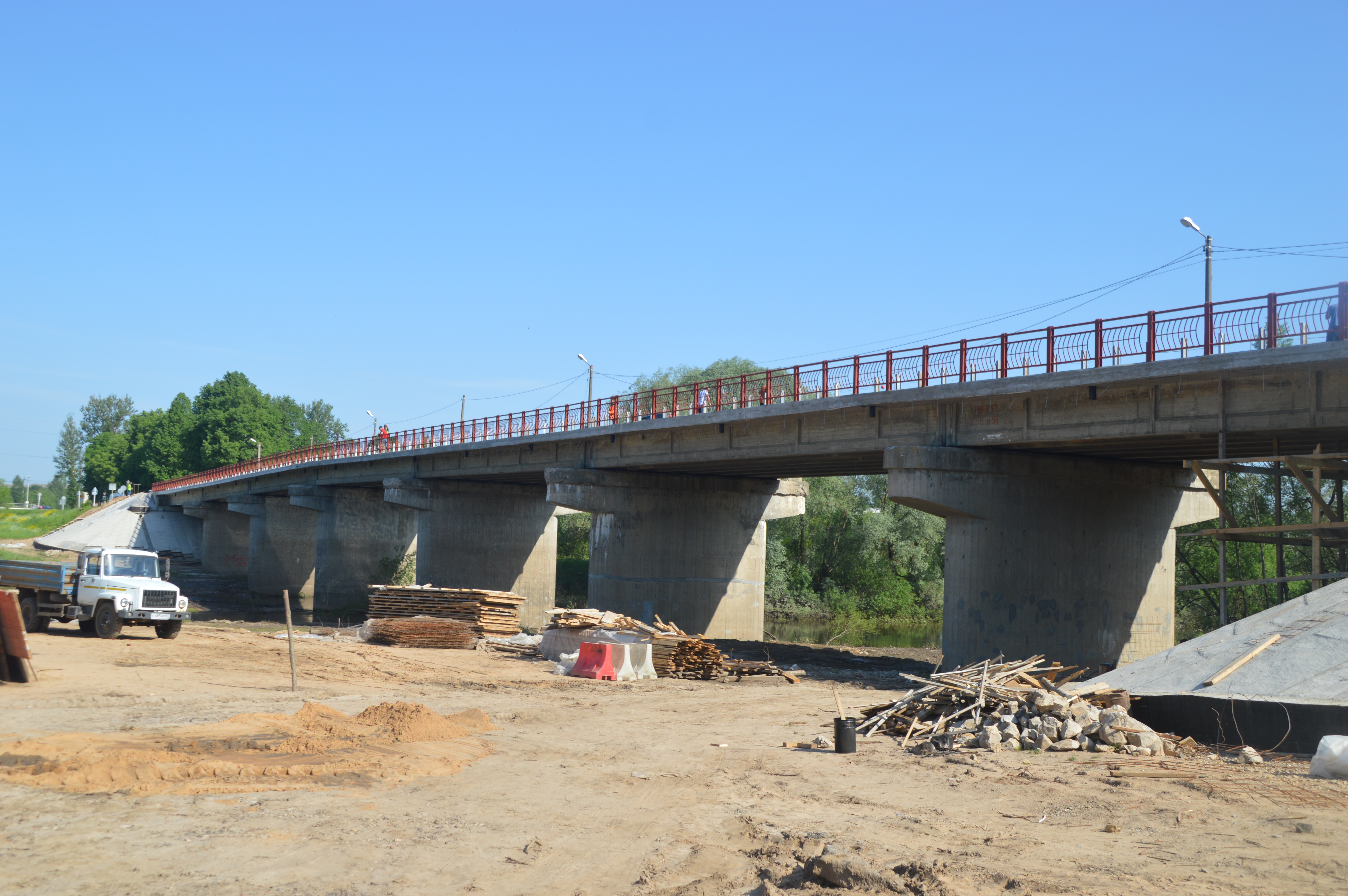 Свои коррективы внесла непогода – воды разлившейся Болвы унесли часть стройматериалов, подтопили временную жилплощадь рабочих. Однако работа не остановилась и идёт в соответствии со сроками. Сейчас движение автомобильного транспорта переведено на правую полосу, а строительство продолжается.