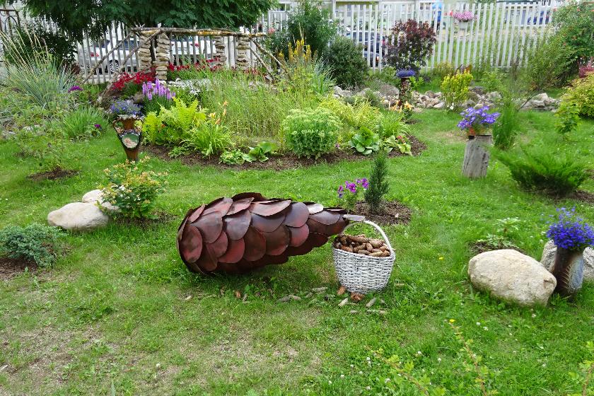 Вместе с мужем они превратили огромную придомовую территорию в изящный эксклюзивный сквер плюс к тому разбили газоны и клумбы поодаль. Нина Васильевна в этом семейном подряде отвечает за ландшафтный дизайн и посадки, а муж - за изготовление арт-объектов, которые меняются каждый год.