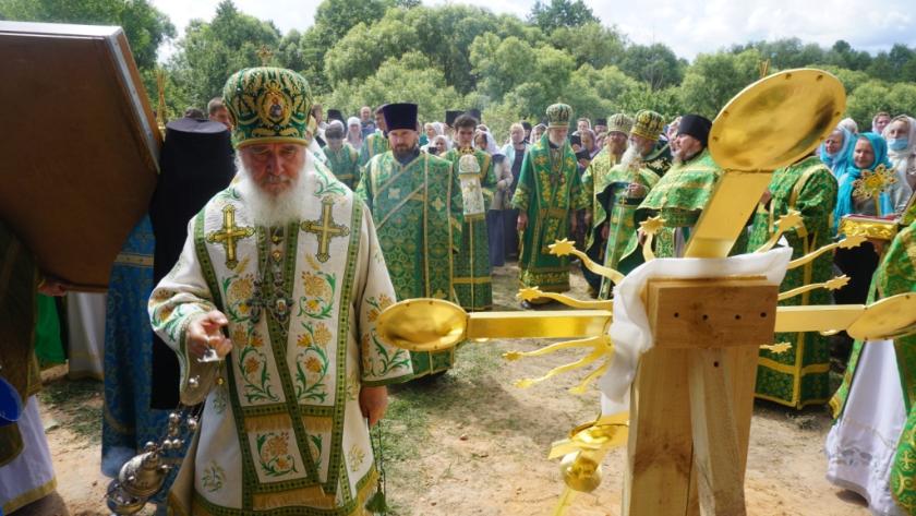 Митрополит Калужский и Боровский Климент и архиепископ Песоченский и Юхновский Максимилиан, епископ Козельский и Людиновский Никита и епископ Тарусский Иосиф совершили Божественную литургию в Свято-Успенском храме.Далее был крестный ход, а также освящение креста, устанавливаемого на купол храма.Со словом проповеди к участникам события обратился митрополит Климент. Он отметил труд всех, кто вкладывает свою душу и силы в благое дело - восстановление храма. Поблагодарил он и попечительский совет, который возглавляет председатель комитета Совета Федерации по бюджету и финансовым рынкам Анатолий Артамонов.