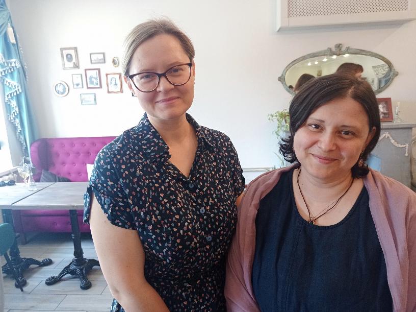 Прежде здесь была пивнушка. И вот вместо нее Ксения и Татьяна решили сделать литературно-музыкальное кафе с красивым тематическим интерьером. К зданию прибавили веранду, граничащую с красивым городским садом. Именно на большой веранде устраиваются бесплатные воскресные обеды на 50 человек.