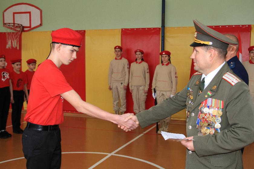 Каждому юнармейцу в этот день выпала честь принести торжественную клятву всегда быть верным своему Отечеству, соблюдать устав «Юнармии», следовать традициям доблести, отваги и товарищеской взаимовыручки, защищать слабых, стремиться к победам в учебе и спорте, чтить память героев.