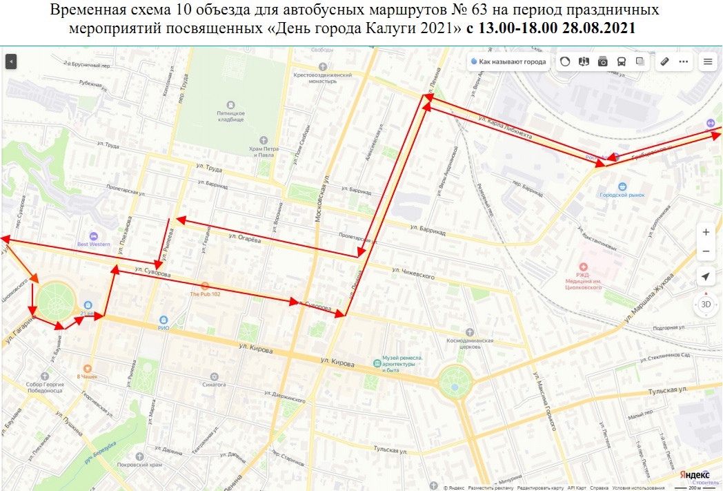 - маршрут № 63 будет осуществлять движение в объезд закрываемых участков через ул.Ленина-ул.Чижевского-ул.Рылеева;