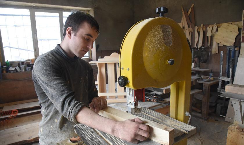 Евгений сменил костыли на палку. Стал ездить на велосипеде. Неизвестно, что сказали бы те доктора, узнай, что этот пациент бетон мешал, фундамент клал и делал еще массу тяжелых строительных работ. Но нашел он себя в столярном деле. Начинающий столяр разобрал и собрал табуретку, из старого шкафа сделал табуретки на продажу. Потом - первые восемь стульев. Потихоньку стал покупать инструмент. Требовалась мастерская. Тогдашний замглавы людиновской администрации Владимир Фарутин познакомил Евгения с местным предпринимателем Олегом Потаповым. Тот вызвался помочь и слово сдержал. Второй год у мастера свое помещение для работы.