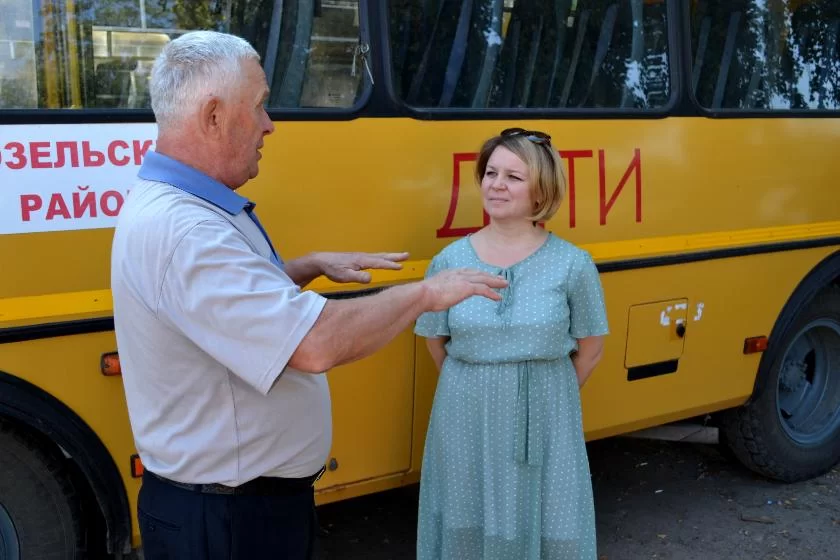 Ранним августовским утром на площади выстроились 11 «пазиков» и «Газелей». Все – желтого цвета, с надписью «Дети». Их готовность к безопасной перевозке школьников проверяли инспектор технического надзора УГИБДД Евгений Гуркин и заведующая районным отделом образования Елена Митина.