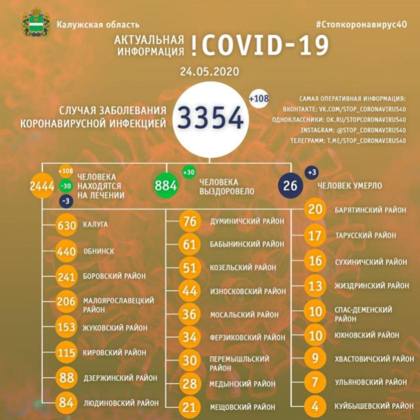 26 человек умерло, из них три новых подтвержденных случая: это житель Малоярославецкого района 1940 года рождения, житель Калуги 1963 года рождения и житель Жуковского района 1973 года рождения.