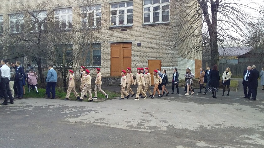 День учащихся в школе начался с церемонии поднятия Государственного флага и исполнения Гимна Российской Федерации. Министр обратил внимание на идеальный порядок на пришкольной территории, который подчёркивал важность этого события для школы.