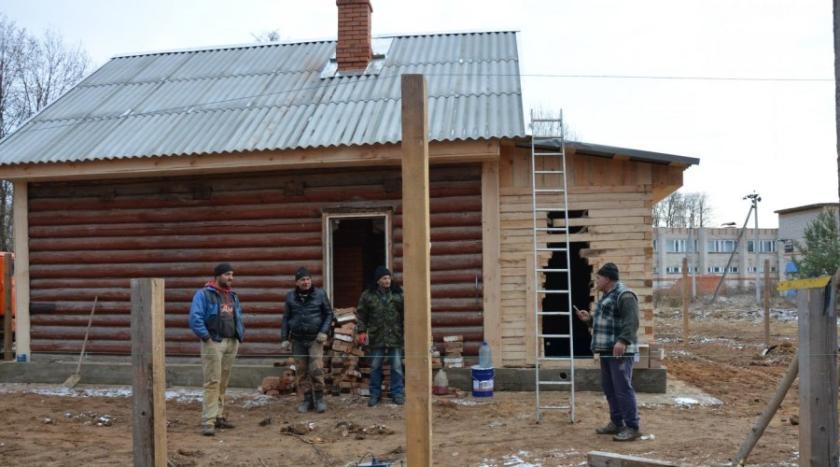 Для расчистки строительной площадки работники администрации поселения организовали несколько субботников. Сейчас строительство избы подходит к конце. Внутри, как в сказке, посетителям улыбается русская печь.