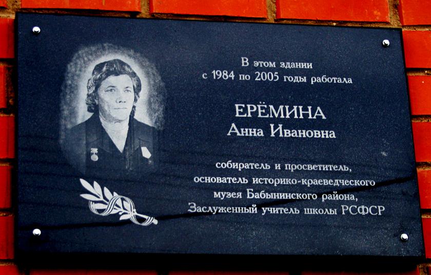 Бабынинцы помнят Анну Ивановну прежде всего как создателя и руководителя музея боевой и трудовой славы, который со временем вырос в нынешний историко-краеведческий музей.