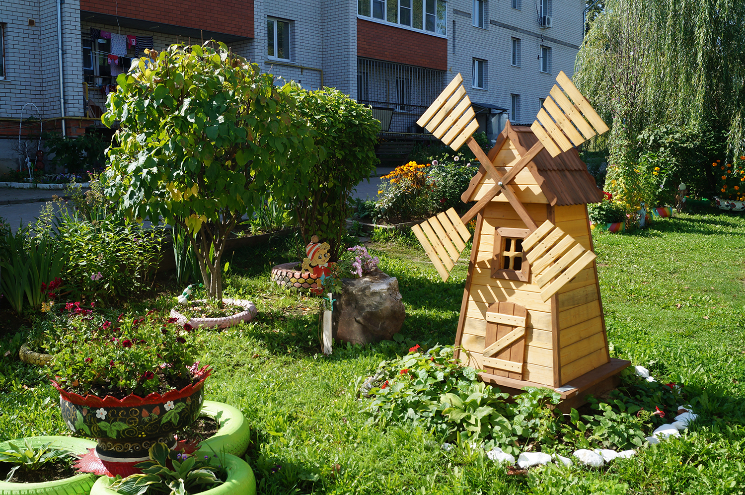 Людмила Викторовна действительно больше всех оказалась причастной к благоустройству двора и прилегающей территории. Цветы обычно сажает она, а все деревянные «городушки» – дело рук ее 22-летнего сына Дениса.