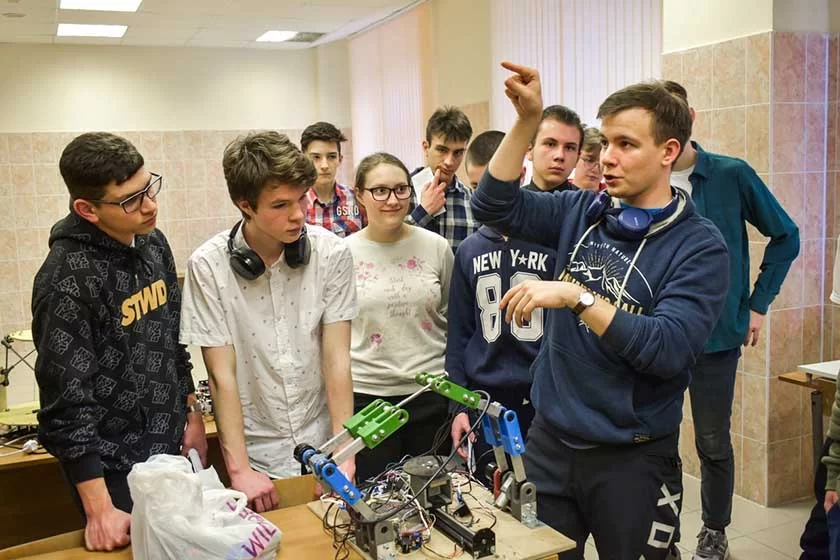 Кроме занятий физикой у учеников физической школы – знакомство с различными специальностями, которые можно получить в Бауманском. Ведь нередко школьники плохо представляют себе все разнообразие современных профессий, а еще меньше информации о том, каких специалистов с нетерпением ждут работодатели. Многие подростки мечтают связать свою жизнь с компьютером, но при этом даже не слышали о том, что сегодняшняя инженерная деятельность в учреждениях и на предприятиях любого профиля непременно связана с работой на компьютере. Неудивительно, что недавно участники школы были в восторге, когда им устроили экскурсию на кафедру «Системы автоматического управления». Они узнали об управляющих системах и средствах автоматизации, компьютерном моделировании и машинном обучении, о проектировании интеллектуальных систем. В КФ МГТУ школьников часто приводят на выпускающие кафедры, чтобы показать, чем предстоит заниматься будущим айтишникам, мехатроникам или робототехникам.