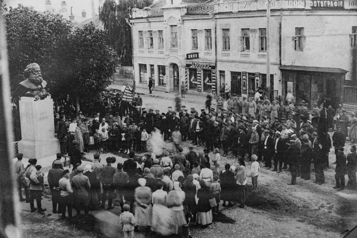 Митинг по случаю Международного юношеского дня возле памятника К. Марксу в Калуге. Сентябрь 1922 г.