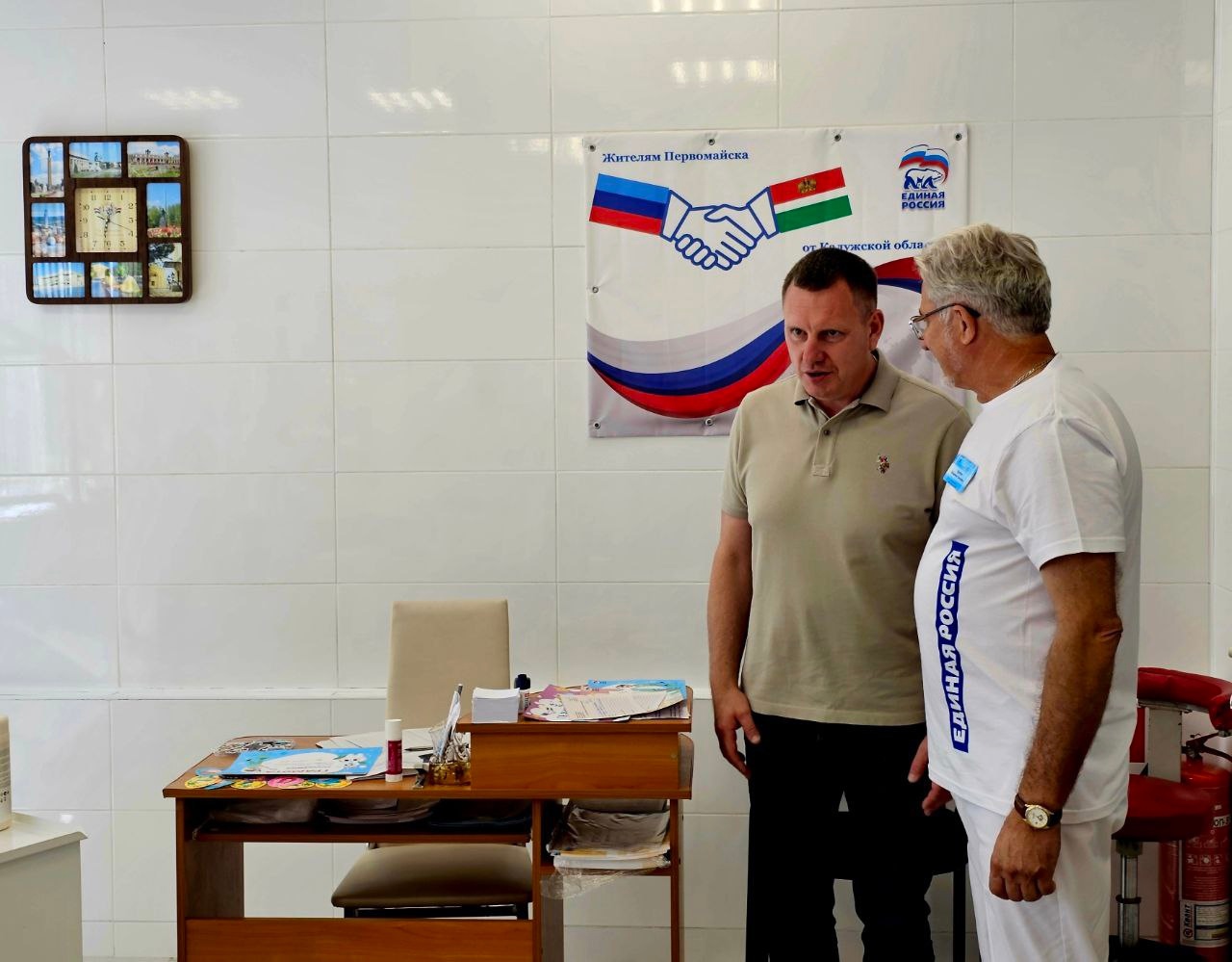Геннадий Новосельцев также посетил стоматологическое отделение местной районной больницы. Здесь с 28 августа по 9 сентября ведет прием бригада калужских стоматологов. Их работу уже оценили и довольные безболезненными процедурами дети, и, конечно, их родители, которые оставили в книге отзывов благодарности и добрые пожелания. Геннадий Новосельцев отметил положительные перемены, произошедшие в отделении стоматологии за месяц, прошедший с момента предыдущего визита. Оно стало еще комфортней, калужские врачи привезли с собой столы и стулья для кабинетов и холла, профессиональный монитор артериального давления и широкоформатный плазменный телевизор, который установили в холле, чтобы малыши могли смотреть мультфильмы во время ожидания.