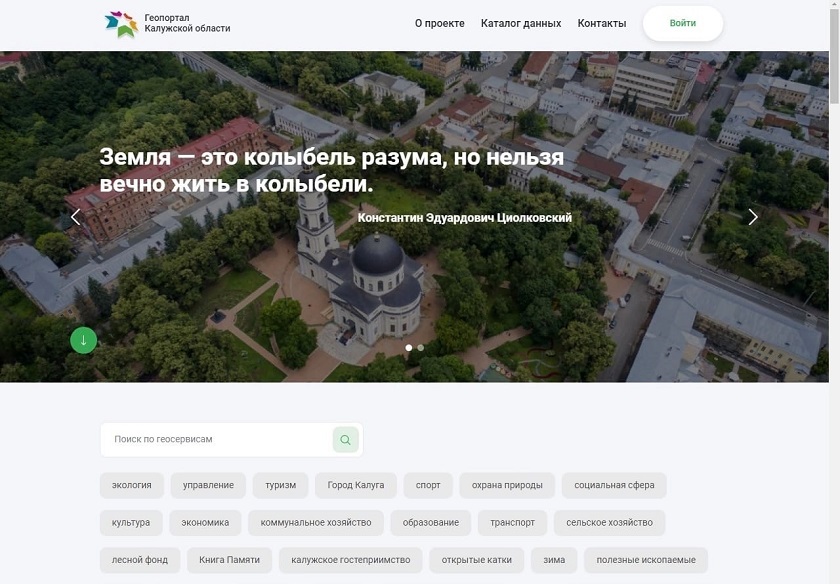 При соединении данных определенной тематики с картографической подложкой получается тематический геосервис. Количество геосервисов внутри геопортала Калужской области не ограничено», - так объясняют конструкцию интернет-ресурса его создатели.