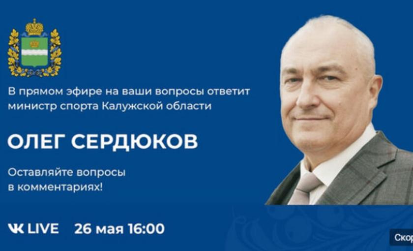 В среду, 26 мая, министр спорта Калужской области Олег Сердюков ответит на вопросы жителей региона в прямом эфире.