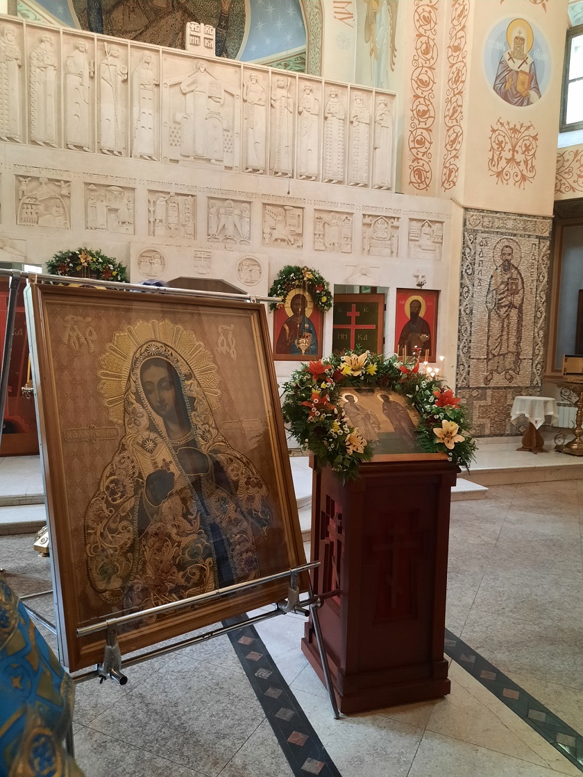 Святыню встретили православные жители и гости Тарусского района. Глава администрации Михаил Голубев с заместителями, главой администрации города Сергеем Манаковым пронесли икону через город к Собору Петра и Павла. Здесь ее встретили колокольным звоном. Праздничное богослужение провел настоятель храма Леонид Гвоздев. Молитвы возносились о благих делах и мире.