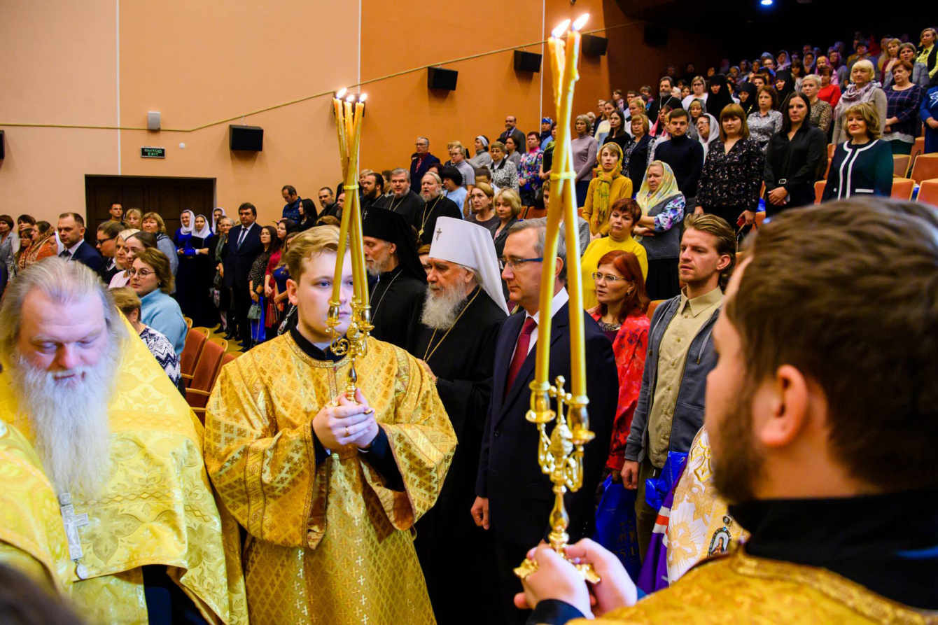 26 сентября в Концертном зале областной филармонии прошло торжественное открытие Богородично-Рождественских образовательных чтений. В этом году их тема – «Глобальные вызовы современности и духовный выбор человека». В открытии приняли участие митрополит Калужский и Боровский Климент, губернатор Владислав Шапша, председатель Законодательного Собрания региона Геннадий Новосельцев, работники системы образования, священнослужители. Среди почетных гостей – депутат Государственной Думы РФ Ольга Коробова, главный федеральный инспектор по Калужской области Игорь Князев.