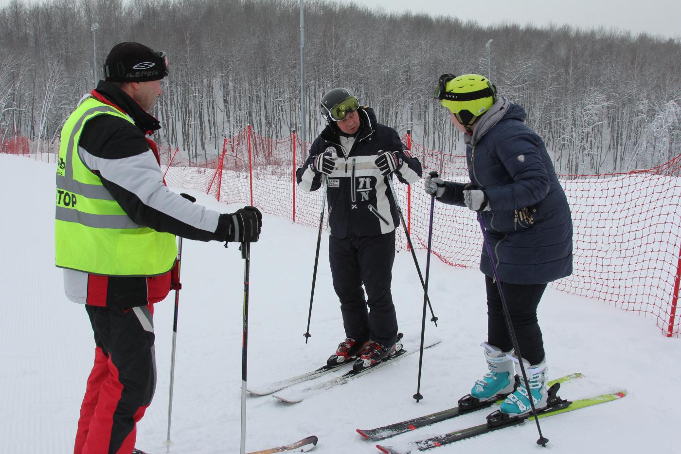 желание 14-летней калужанки и преподал ей урок катания на горных лыжах на трассе спорткомплекса «Квань».