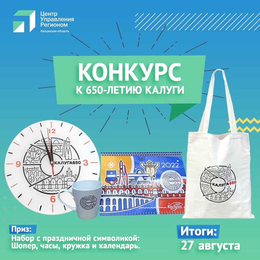 Калужанам предлагают испытать свою удачу и выиграть набор с праздничной символикой. В набор входят настенные часы, кружка и сумка-шопер. Чтобы участвовать в розыгрыше, калужанам необходимо выполнить несколько простых условий: быть подписчиком группы «ЦУР» ВКонтакте и написать под постом о розыгрыше комментарий за что Вы любите Калугу.