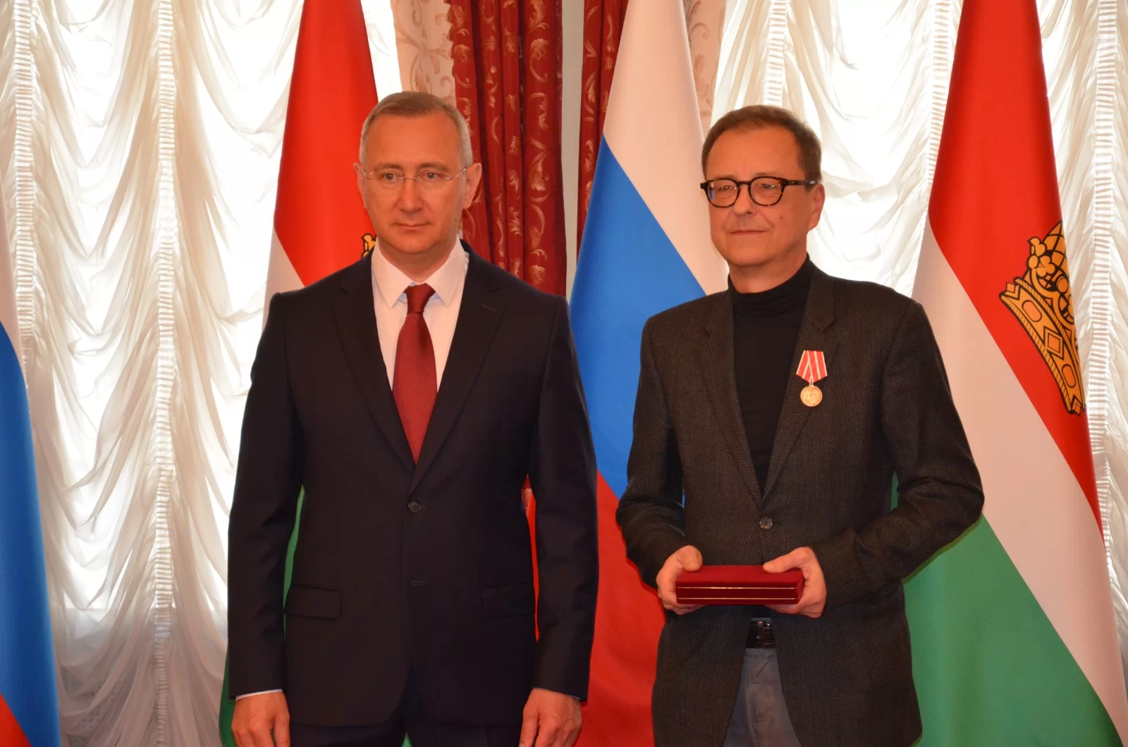«Для меня сегодня большая честь и удовольствие вручить вам государственные и областные награды как знак признания вашего вклада в развитие Калужской области и нашей родной России. Поздравляю вас!» - обратился к виновникам торжества губернатор Владислав Шапша.