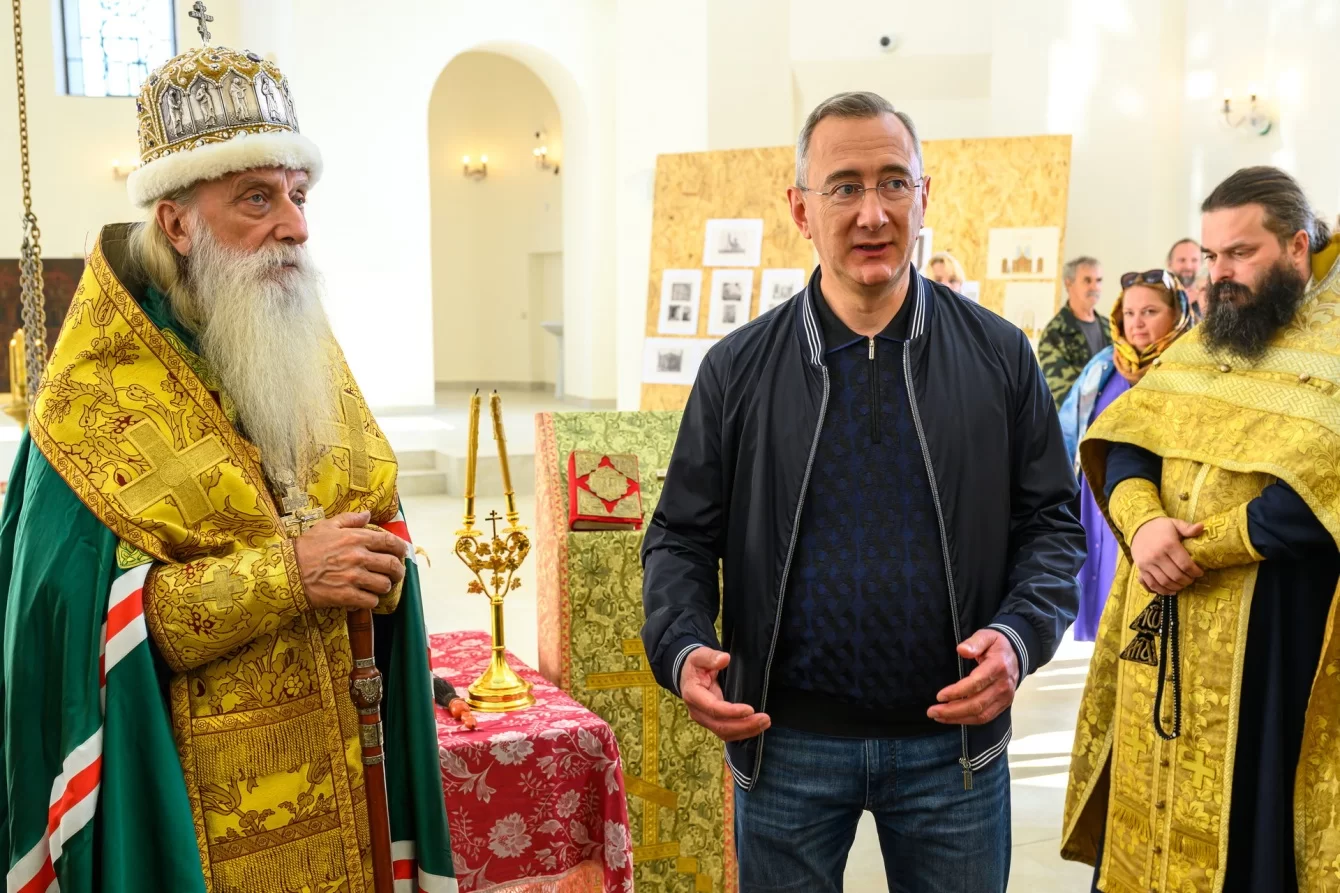 А в соборе завершаются реставрационные работы. Мастера установили последнее из трех полотен для фасадов в технике римской мозаики - «Святую Троицу». Оно украсило западный вход в храм. Все работы - от создания эскизов до монтажа готового изображения - выполнила мастерская художника-монументалиста Василия Фортова. На каждую из мозаик у мастеров ушло от полутора до двух месяцев труда.