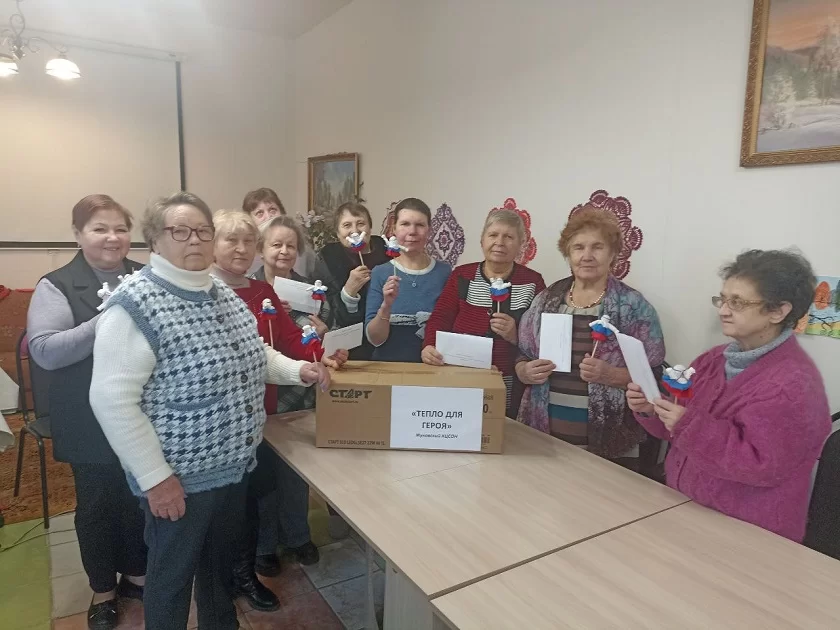 Сейчас серебряные волонтёры принимают участие во Всероссийской благотворительной акции «Тепло для героя» – собирают посылки, тёплые подарки и пишут письма для психологической поддержки защитников Отечества, которые находятся в зоне специальной военной операции или проходят лечение после ранения.