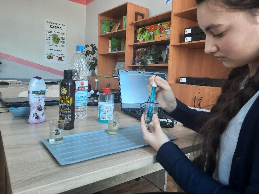 Разговор продолжила учитель химии Светлана Фролова:– В программе по химии значительная роль отведена экспериментальным методам изучения веществ и явлений, а, как известно, эксперимент является источником знаний и критерием их истинности в науке. Он усиливает мотивацию к изучению химии, делает уроки живыми, наглядными и интересными. Особый интерес у ребят вызвали эксперименты, выполненные и с помощью цифровой лаборатории. Для работы с цифровыми датчиками мы использовали специальное программное обеспечение, установленное на компьютер. Это позволило «заглянуть» внутрь вещества или процесса и увидеть то, что недоступно органам чувств: водородный показатель среды (pH), концентрацию отдельных ионов, электрическую проводимость среды и другие измеряемые показатели свойств веществ.