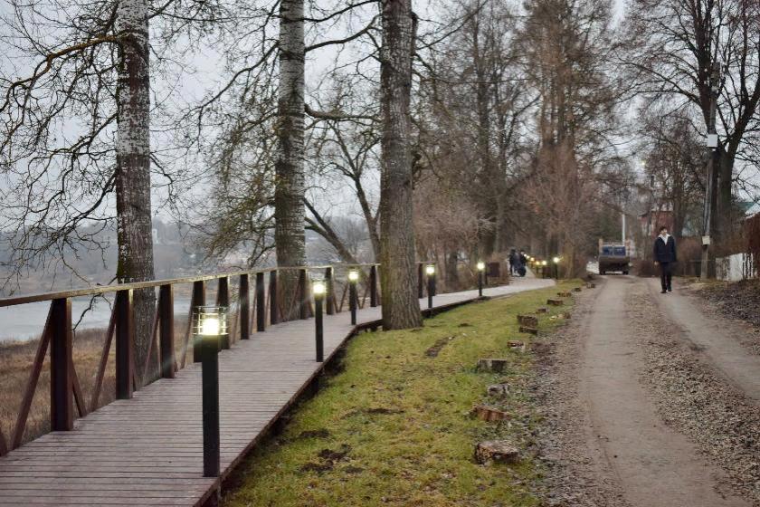 Свое знакомство с благоустроенными объектами первый заместитель губернатора начал с пешеходной дорожки по улице Декабристов, протянувшейся вдоль набережной реки Оки. Новое место отдыха уже полюбилось и тарусянам, и туристам: деревянную дорожку предваряет навесной балкон - смотровая площадка с оригинальной скамейкой вокруг сохраненного дерева. Вниз к реке ведет лестница, вечером прогулочную зону освещают фонарики, создающие романтичную атмосферу. Отсюда открываются потрясающие виды на речные дали, об этом рассказал участникам встречи художник из Москвы, который в это время работал на пленэре. Подрядчики - сообщество предпринимателей «Тарусский купеческий клуб» - постарались, чтобы новое место для прогулок получилось по-настоящему красивым и стильным.