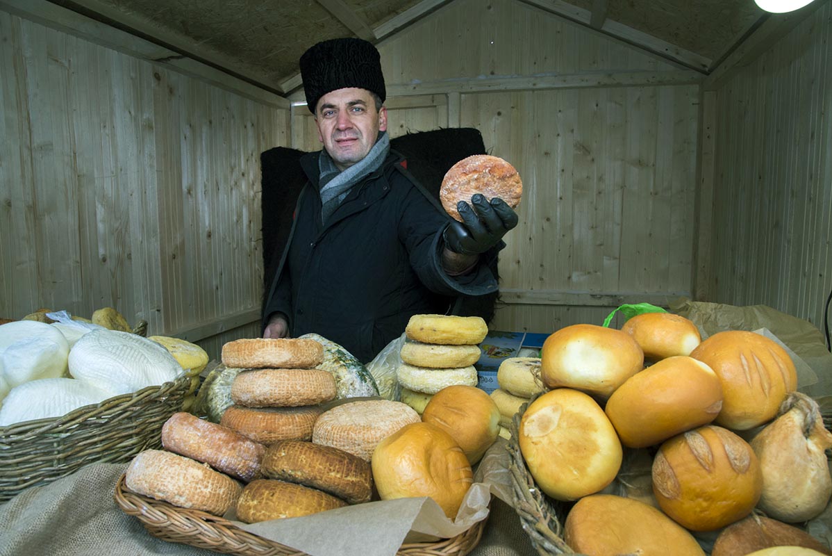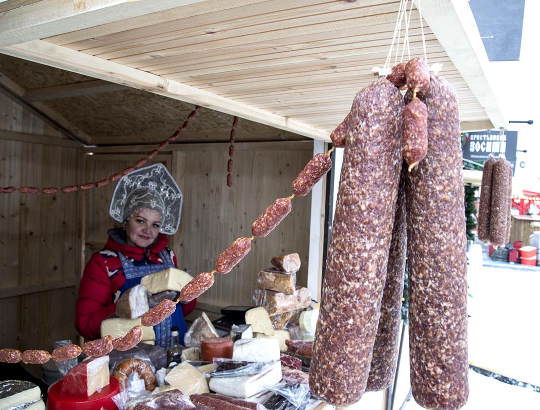 В рамках программы «Сыр, глинтвейн, колбаски. Гоголевские сказки» на ярмарке можно было продегустировать и приобрести вкуснейшие фермерские сыры, колбасы, блюда и коктейли авторской кухни. География представленных здесь товаров – вся Россия: от Калининграда до Владивостока. Всего на ярмарке будут в течение двух с половиной недель работать более сотни торговцев. Большинство из них – наши земляки. Но есть также сыроделы и переработчики мяса из Подмосковья, Владимирской, Тверской, Рязанской областей, Республики Адыгея. Всех не перечислить. Из Владивостока, например, кулинары приехали, чтобы порадовать калужан вкуснейшими пирожками на пару – пян-се. А рестораторы из Калининграда готовили на морозе горячие трдельники. Вкусно, весело, интересно. И так каждый ярмарочный день.