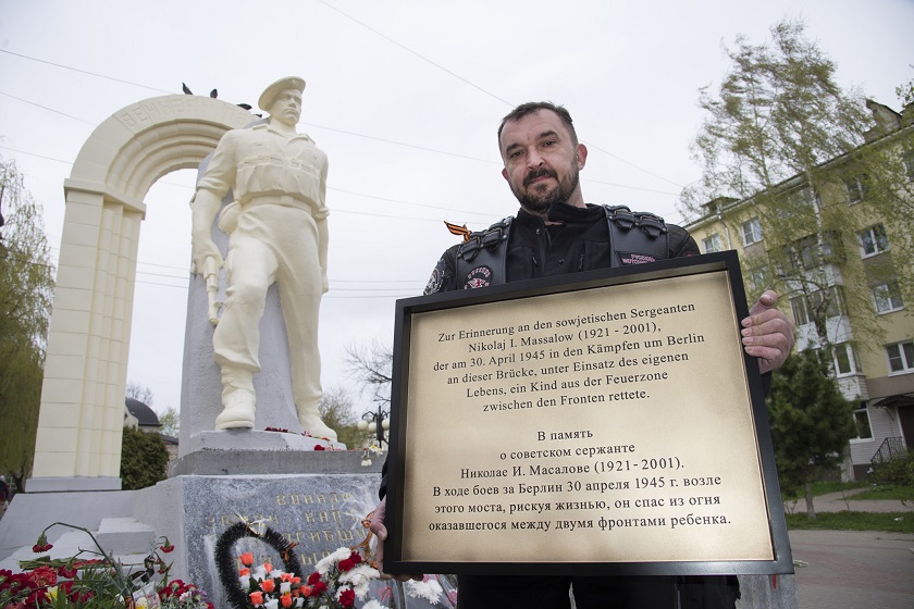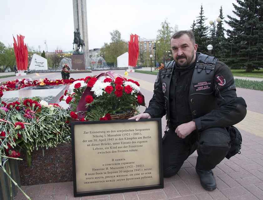«Мы посчитали символичным, если памятная табличка будет сделана в Берлине, поэтому искали мастера именно там. Идея эта зародилась очень давно. Когда-то в школе мы изучали подвиги наших земляков, в частности, подвиг Николая Ивановича. Приехав в Германию, я посетил Трептов-парк и был поражен величиной и мощью этого комплекса. А дальше, живя уже здесь, захотелось что-то сделать для своей малой родины. Сказалось мое увлечение мотоциклами, поэтому было решено, чтобы копия мемориальной доски попала домой тем же путем, какой проделал Николай Масалов, возвращаясь с фронта. Я читал многие его интервью, где спокойно, даже обыденно он говорил о своем подвиге – это действительно поколение героев, нам есть на кого равняться. Николай Иванович являлся почетным гражданином Берлина, но сейчас этого звания, к сожалению, его лишили. Поэтому мы все, и администрация Кемеровской области, его земляки, и «Ночные Волки», и «Русские Мотоциклисты», и просто неравнодушные люди – выходцы из России, живущие в Германии, будем собирать подписи, чтобы это решение было изменено. Мы гордимся своими дедами и прадедами, поэтому отдаем им дань уважения и в этом чувствуем свою сопричастность. «Ночные Волки», «Русские Мотоциклисты» постоянно в движении. К 9 Мая ребята ездят на воинские захоронения, убираются там, наводят порядок, также помогают монастырям, собирают средства для нуждающихся, ведут работу с детьми – все это делается круглогодично. Мы считаем это своей миссией! », - подчеркнул мотоциклист.
