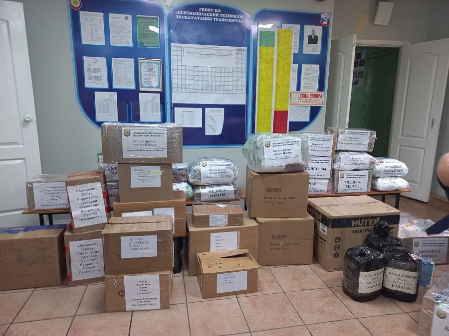 - рассказал директор техникума Виктор Лесин, кстати, сопровождающий груз к местам доставки. Это 2-й, 4-й батальон, специальный противотанковый батальон.При отправке груза присутствовали родители перемышлян - участников СВО.
