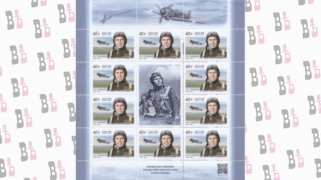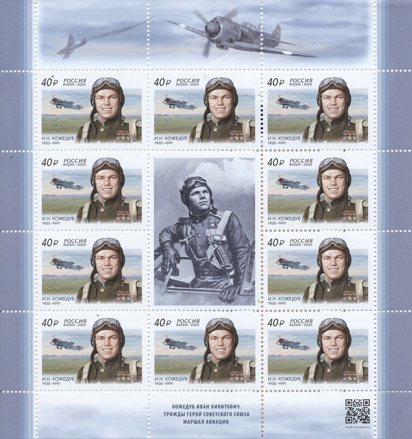 К юбилейной дате также был выпущен штемпель специального гашения для центрального почтового отделения г. Калуги. На почтовой марке изображены портрет И.Н. Кожедуба в лётной форме и самолёт-истребитель Ла-7, на котором он воевал.