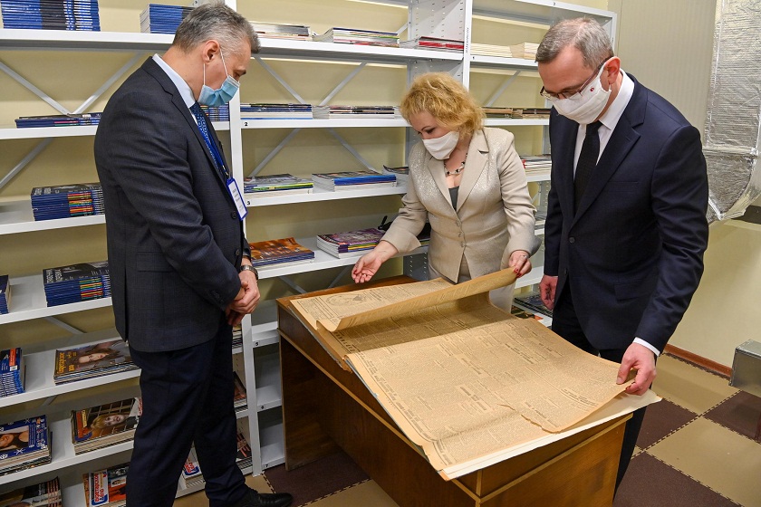 Начальник управления по делам архивов Майя Добычина показала губернатору архивохранилище и внедряемые автоматизированные архивные технологии. Также глава региона побывал в выставочном зале на экспозициях «Детство полководцев (Н.П. Пухов и В.В. Глаголев)» и «Без срока давности».