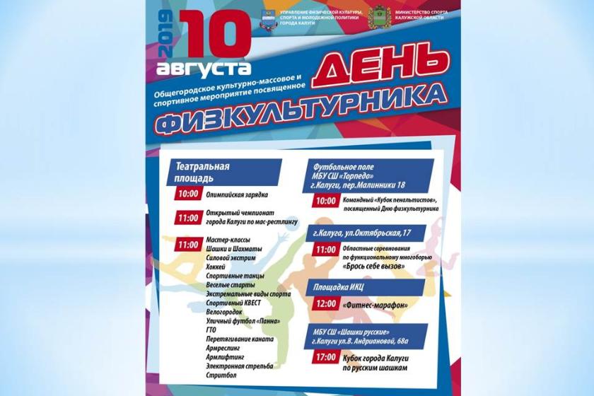 Мероприятия, которые будут проходить на спортивных объектах Калуги 10 августа.