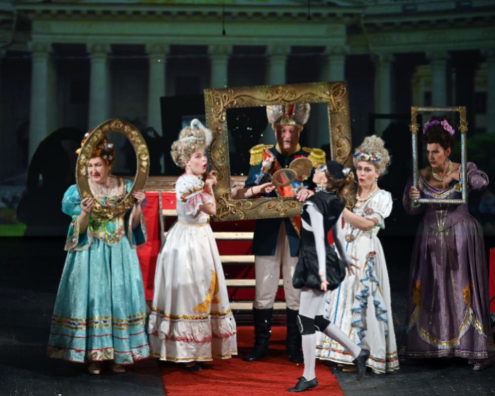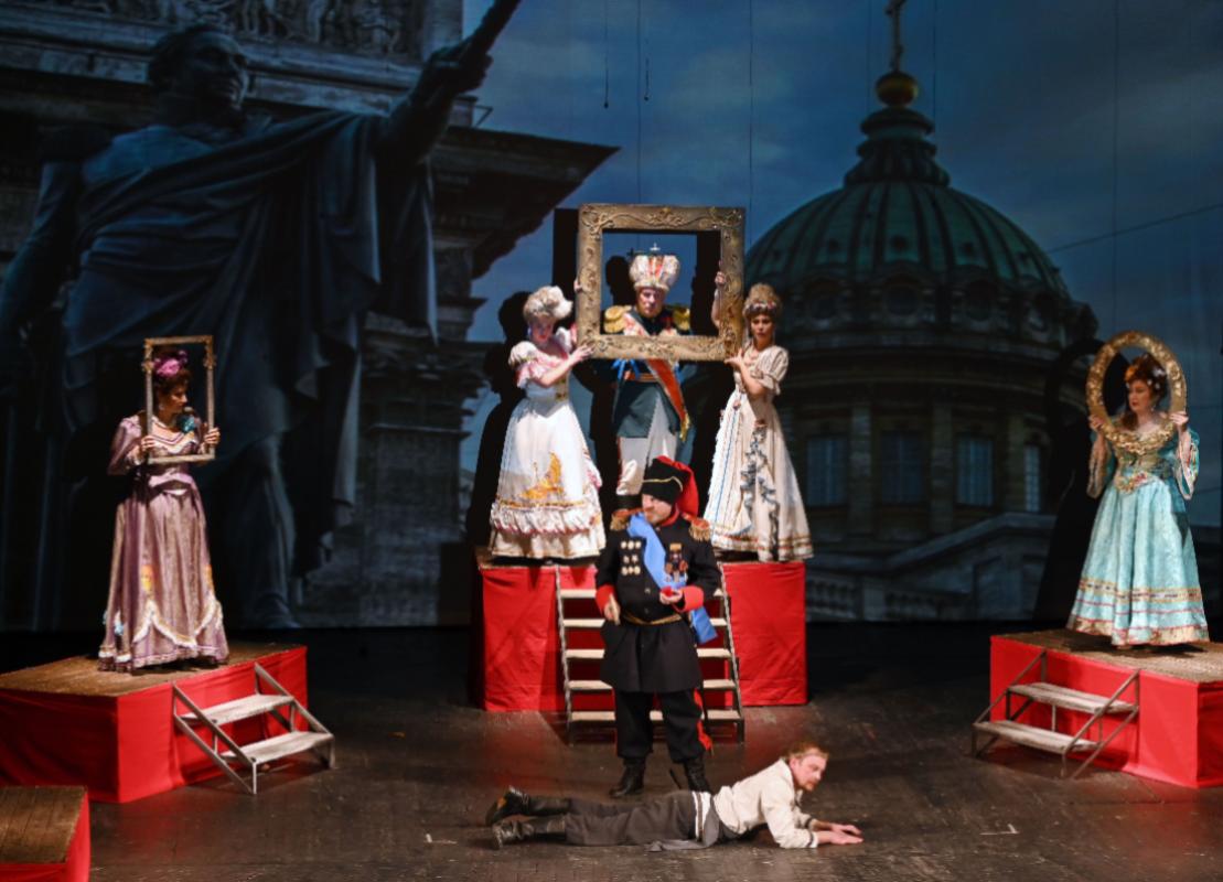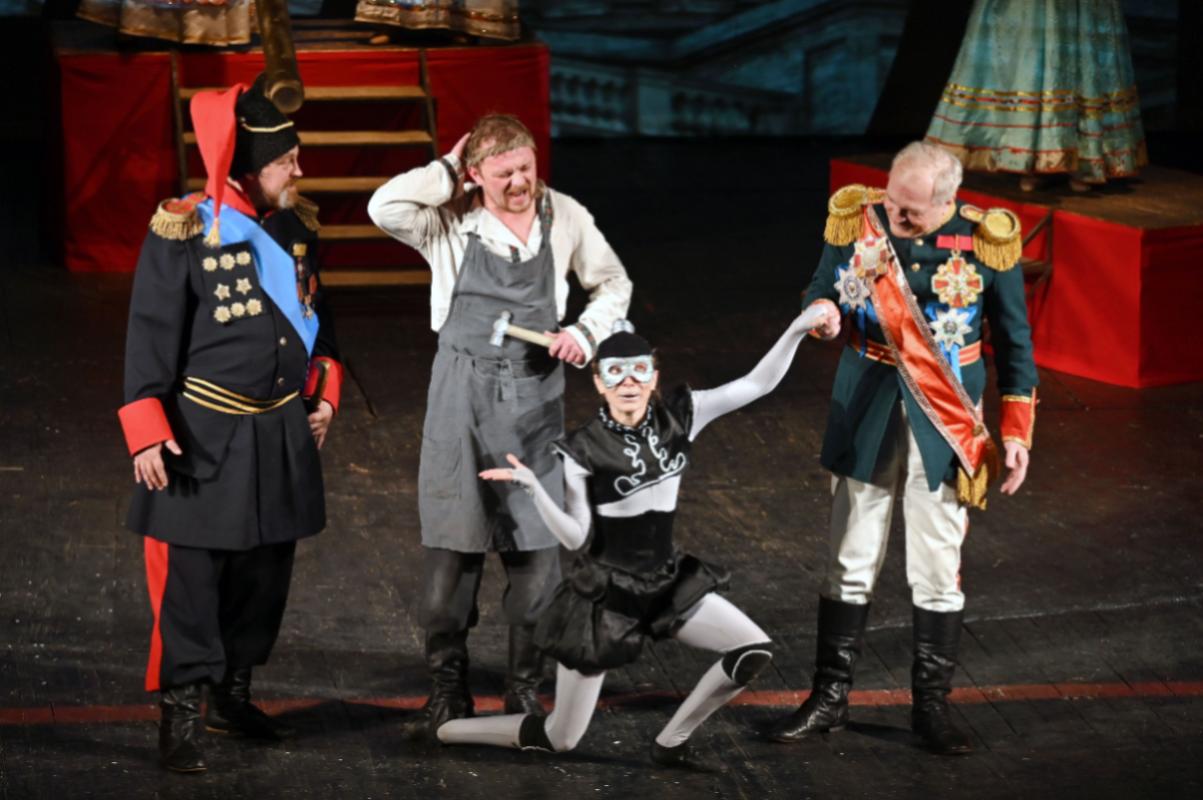 Особенно поразило в луганской постановке, что режиссер сохранил уникальность произведения Лескова – гармонично переплетенные реальность и вымышленные события – и при этом обошелся практически без декораций. Три постамента составляют основу дворцов в Англии и Петербурге, но все устроено так, что каким-то невероятным образом видится роскошь и великолепие этих дворцов, балов, приемов. Режиссер вслед за писателем сделал это столь искусно, что воссоздается полная уверенность в реальности описанной истории.